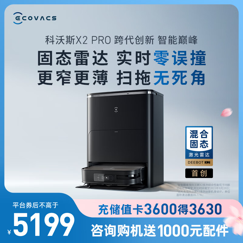 科沃斯X2Pro扫地机器人智能家用扫拖一体自动清洗自动集尘热水洗抹布高配-琉光金DEX86-02EA价格:5599.00元!