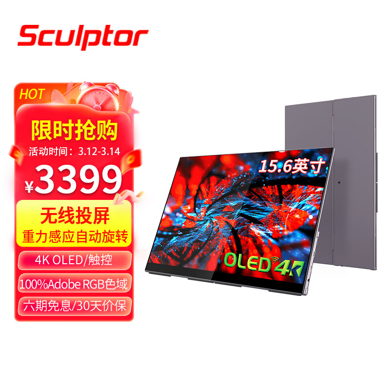雕塑家15.6英寸4K OLED 便携式显示器专业级手机电脑笔记本外接拓展屏幕无线投屏拓展ps4/5移动副屏价格:3499.00元!