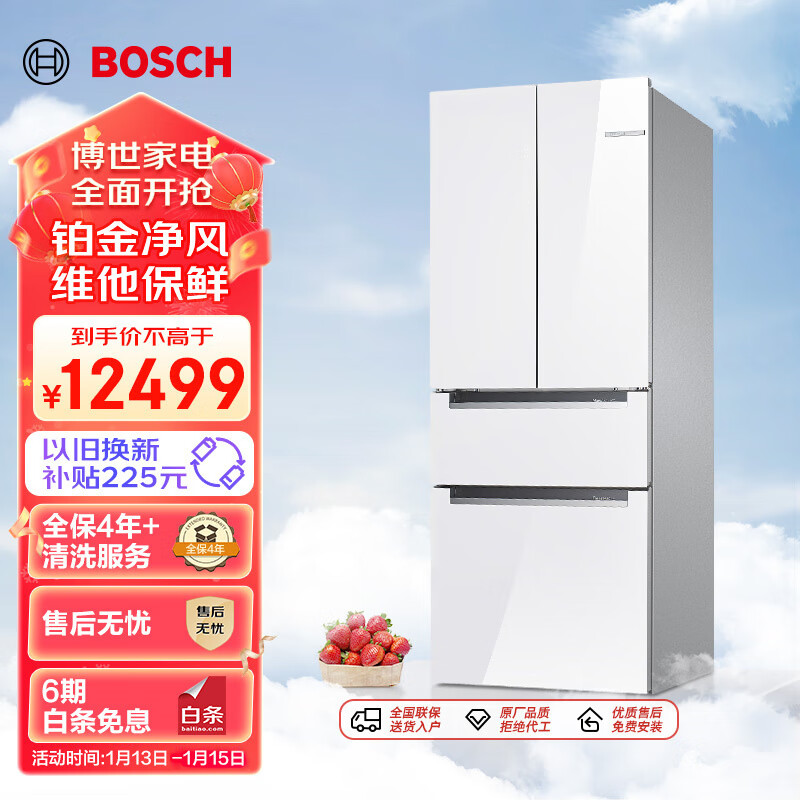 博世(BOSCH)【云朵白全域智净M7】462升家用变频风冷无霜保鲜法式多门双循环电冰箱KFF72VA23C价格:12499.00元!