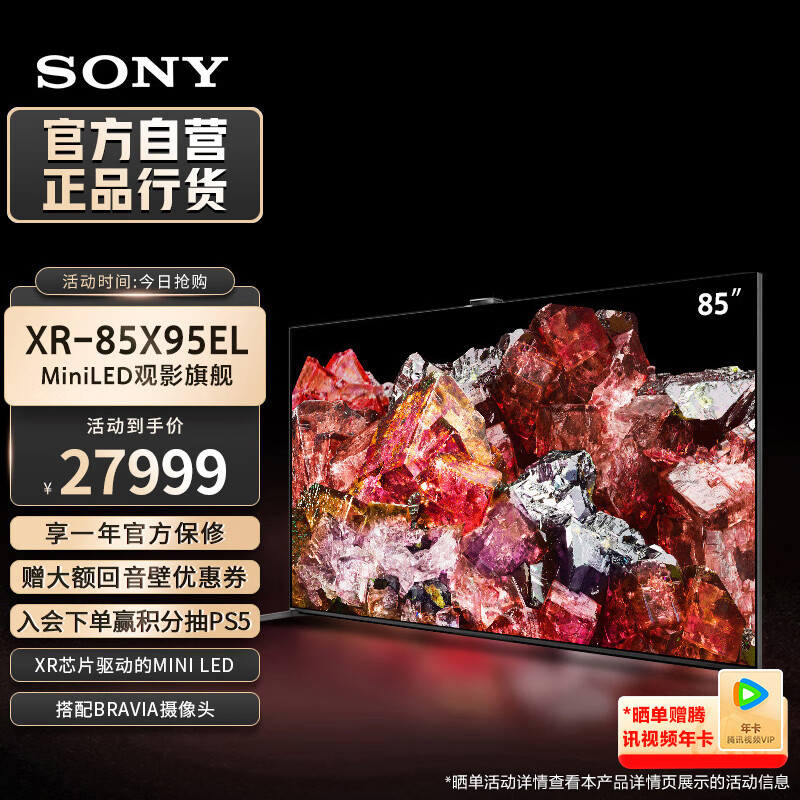 索尼(SONY)【官方直营】XR-85X95EL 85英寸 MiniLED 4K120Hz 旗舰影院电视 智能摄像头 XR认知芯片 京配上门价格:27999.00元!
