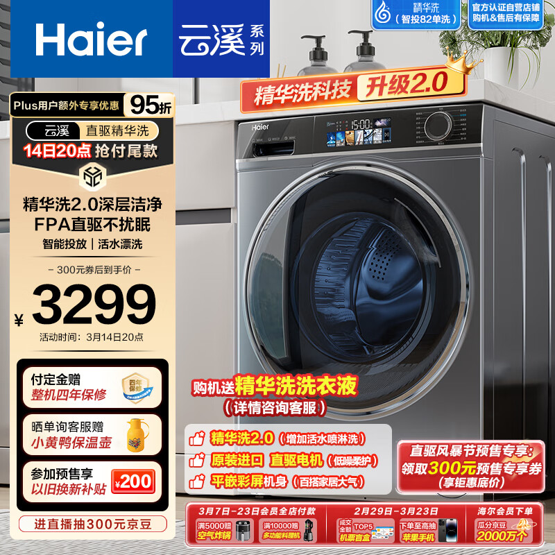 海尔(Haier)直驱精华洗 云溪82S 滚筒洗衣机全自动家用 10公斤大容量 纯平嵌入 智能投放 EG100MATE82S价格:3599.00元!