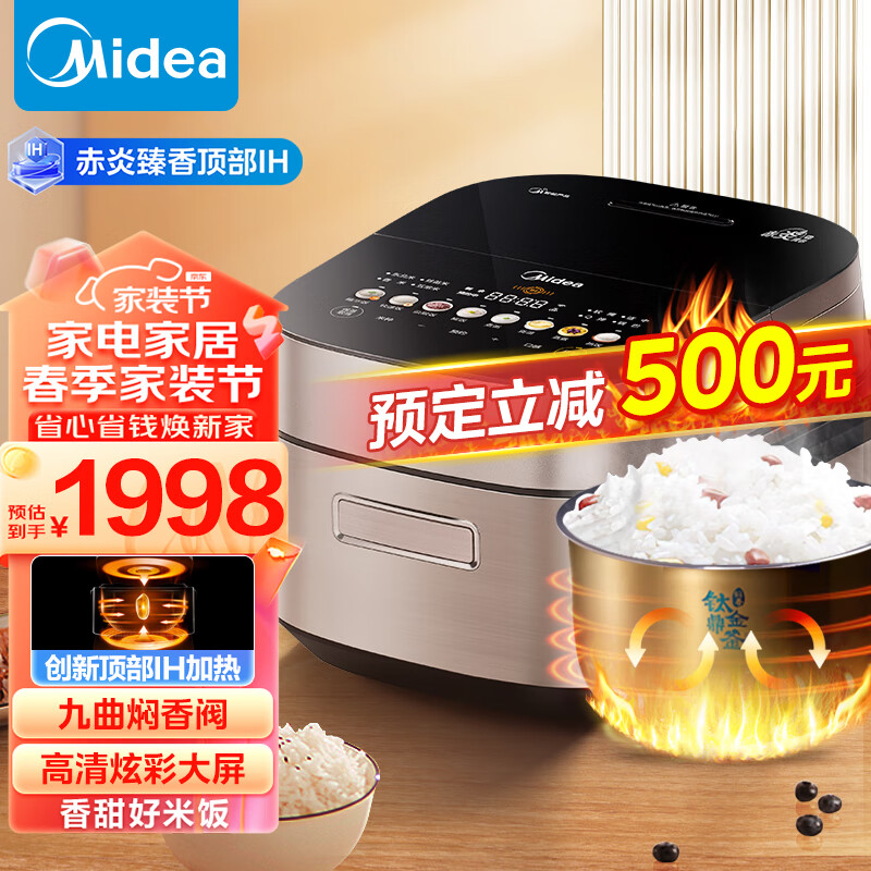 美的(Midea)赤炎臻香IH智能电饭煲Pro电饭锅家用4L钛金鼎釜九曲焖香WIFI智控蒸米饭锅SFB4021H(3-8人)价格:2198.00元!