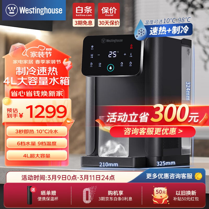 西屋(Westinghouse)台式即热式饮水机小型饮水机家用 办公台式客厅台面即热饮水机 免安装一键速热恒温直饮机 WFH40-W4S 即热制冷型价格:1599.00元!