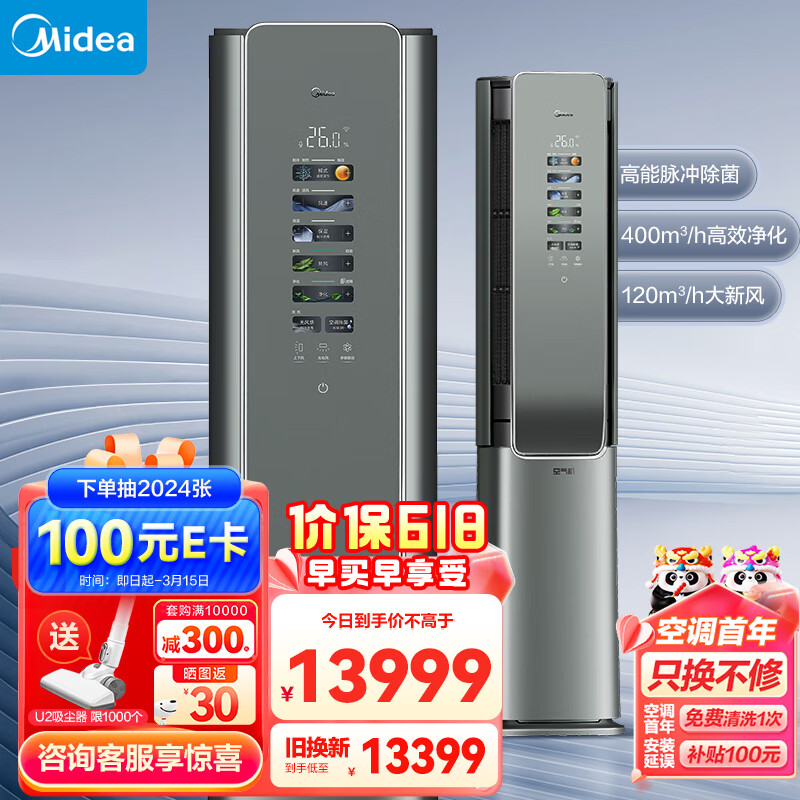 美的(Midea)空调柜机 3匹鲜净感空气机 智能空调 榭湖银一级变频立式柜机 KFR-72LW/T5价格:13999.00元!