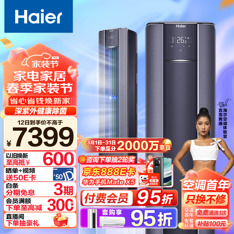 海尔(Haier)新一级变频 3匹 京彩 客厅空调立式柜机 布艺外观 京东小家智能 KFR-72LW/81@U1-La 以旧换新价格:7399.00元!