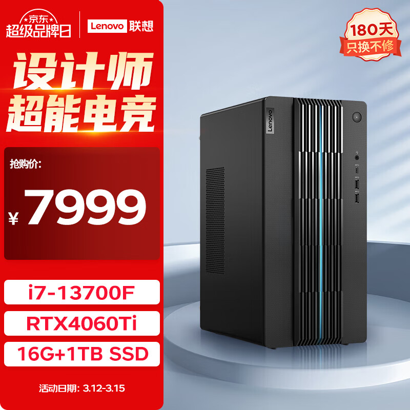 联想(Lenovo)GeekPro设计师游戏台式电脑主机( 酷睿13代i7-13700F RTX4060Ti 8GB显卡 16G 1TB SSD )价格:7999.00元!