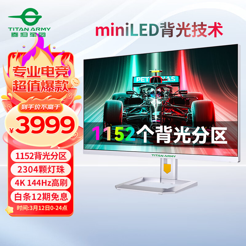 泰坦军团32英寸4K 144Hz miniLED量子点HDR1000 内置音箱10.7亿色 KVM 升降旋转电脑电竞显示器P32A6VPD65W价格:4399.00元!