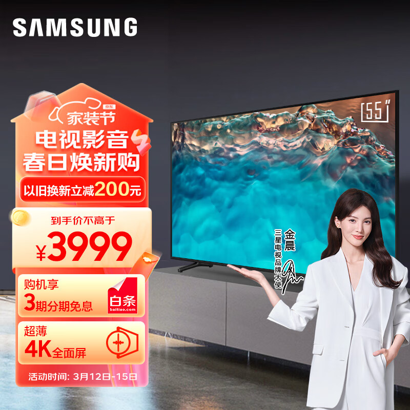三星(SAMSUNG)55CU8000 55英寸 平板液晶电视 超薄4K屏 AI智能补帧 无开机广告 UA55CU8000JXXZ价格:3949.00元!