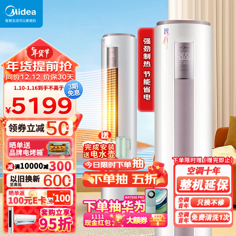 美的(Midea)大2匹 智能变频冷暖 空调柜机 一级能效 新能效KFR-51LW/BDN8Y-YH200(1)A价格:5199.00元!