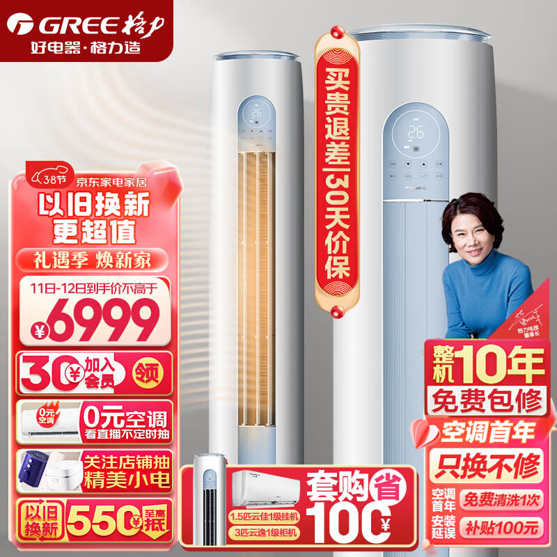格力(GREE)空调 京东小家智能生态 3匹 云逸-Ⅱ 1级能效 客厅空调立式空调柜机KFR-72LW/NhGm1BAj价格:6999.00元!
