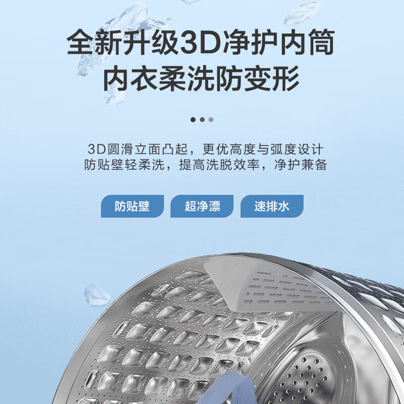 2、外形外观:颜色很好看,物流很快,送货上门。送货小哥和安装师傅的态度都很好。洗净效果:洗的很干净,噪音也很小,晚上洗衣服都听不见声音。