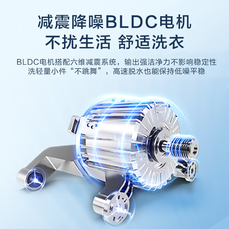 5、实体店的洗衣机看都很贵回来在京东上看了看就相中这一块了颜值很高主要是二千多点还带烘干功能简直是太爱了。洗衣机洗衣服的时候声音很小很小几乎就是静音模式、洗了几次洗的也很干净主要感觉不伤衣服。很温和很喜欢得一款洗衣机家里的棉拖鞋扔进去脱水也很方便很喜欢这么功能齐全的一个洗衣机?大家有喜欢的可以种草哦