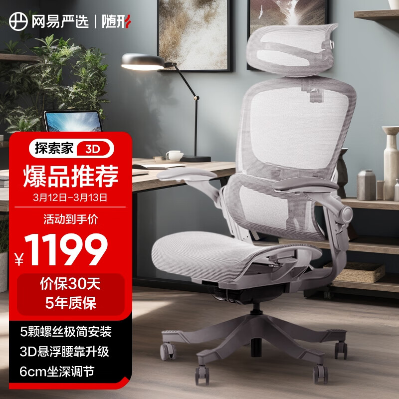 网易严选探索家经典款无搁脚 人体工学电脑椅办公电竞老板会议学习椅凳子价格:1799.00元!
