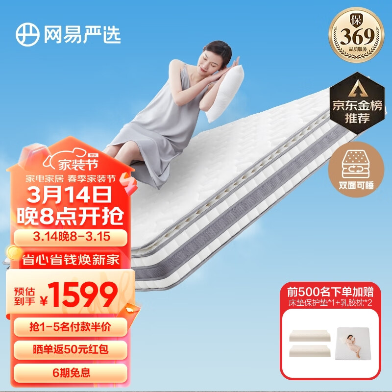 网易严选AB面弹簧床垫1.8*2米 乳胶床垫席梦思 奢睡款 抑菌防螨 独袋弹簧价格:1899.00元!