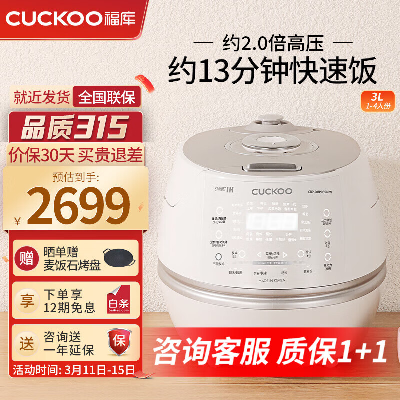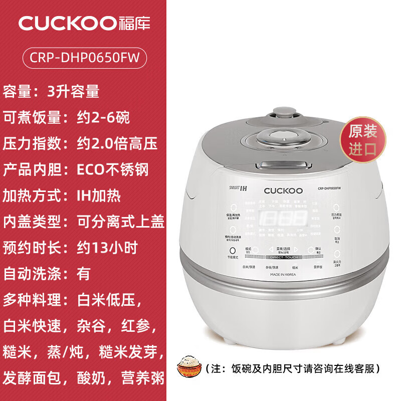 福库(CUCKOO)电饭煲 家用韩国原装进口电饭锅IH电磁加热多功能预约定时智能语音高自动洗涤不粘锅 上新CRP-DHP0650FW(3L 1-4人份)价格:3599.00元!