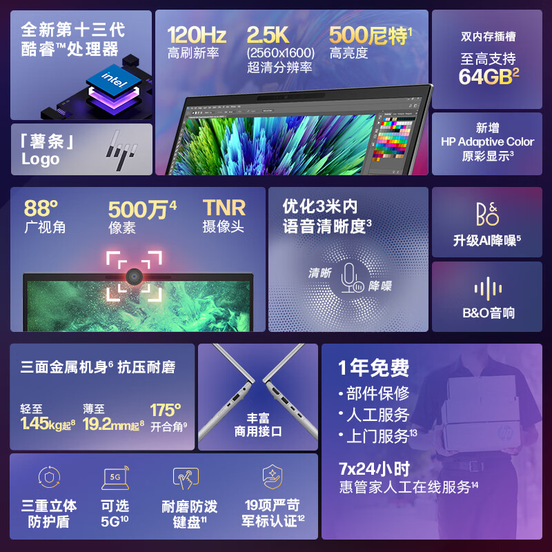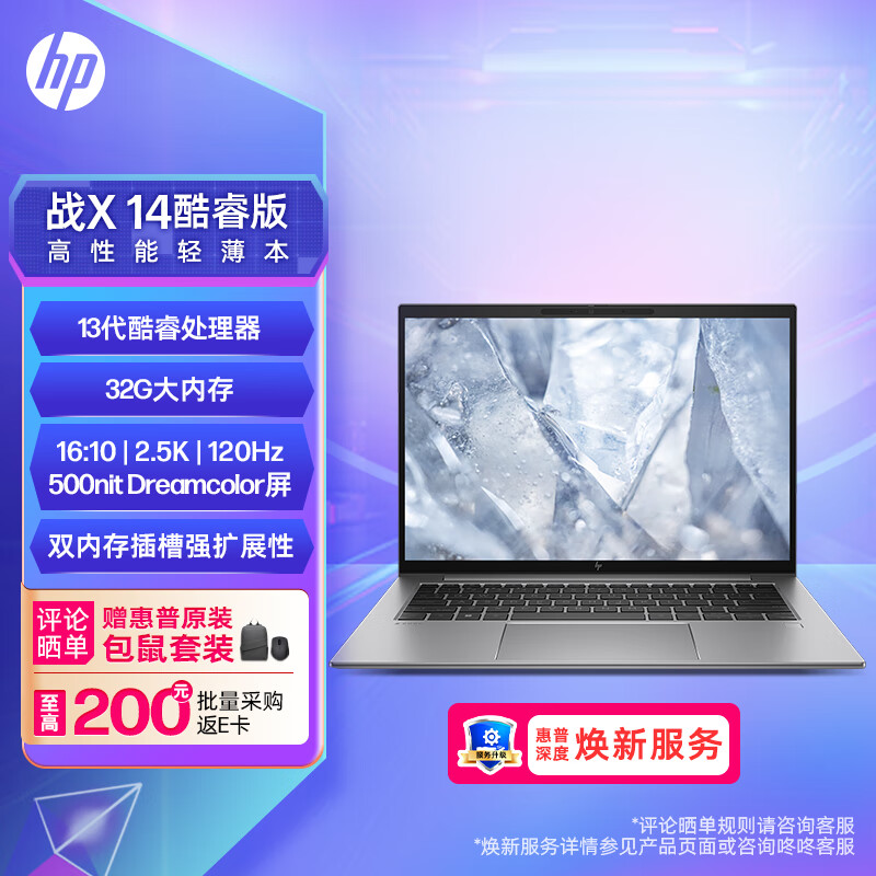 惠普(HP)战X?13代14英寸高端高性能轻薄办公笔记本AI电脑?i7-1360P 32G 1T 2.5K 120Hz屏 5G畅连深银灰价格:8999.00元!