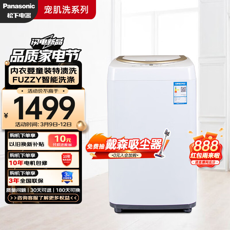 松下(Panasonic)婴儿小型洗衣机全自动3.2公斤 迷你小波轮 母婴洗专用 人工智能洗 桶洗净 宠肌洗系列 XQB32-P3A2F价格:1499.00元!