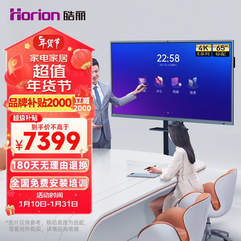 皓丽智能会议平板一体机65英寸触摸触屏会议电视4K智慧屏投影一体机商业显示会议室大屏培训E65标配价格:8849.00元!