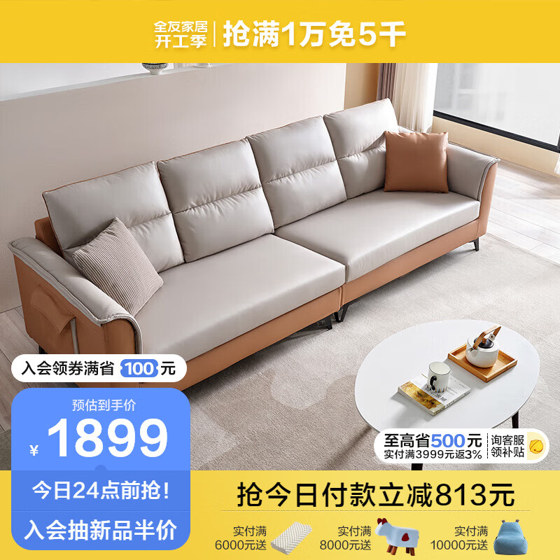 全友家居简约科技布沙发四人位沙发直排客厅小户型北欧休闲沙发102567价格:2712.86元!