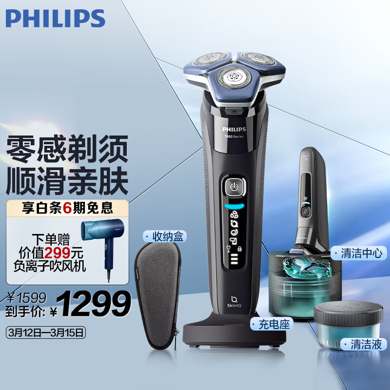 飞利浦(PHILIPS)电动剃须刀蜂巢7系Pro+ SkinIQ高端智能肌能感应刮胡刀 生日礼物 送男友 送老公价格:1299.00元!