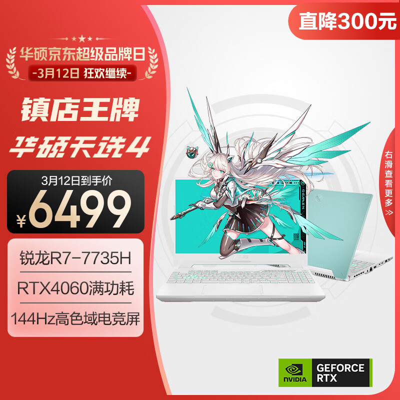华硕天选4 锐龙版高性能电竞游戏本笔记本电脑(锐龙7 7735H 16G 512G RTX4060 144Hz高色域电竞屏)青价格:6499.00元!