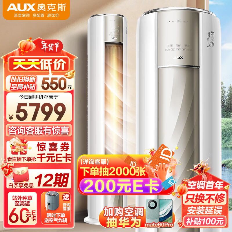 奥克斯(AUX)空调柜机3匹 新一级能效 客厅圆柱立式 冷暖变频节能 WiFi智控KFR-72LW/BpR3AQJ1(B1)价格:5799.00元!