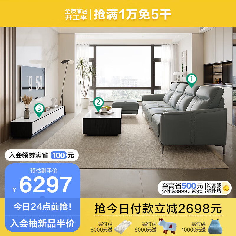 全友家居 简约客厅3件套装102710皮沙发岩板茶几电视柜主柜客厅家具价格:8995.71元!