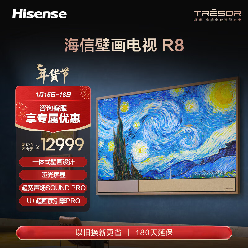 海信壁画电视R8K 75R8K 75英寸 一体式壁画设计 艺术电视 哑光屏显 超宽声场Sound Pro壁画电视机价格:12999.00元!