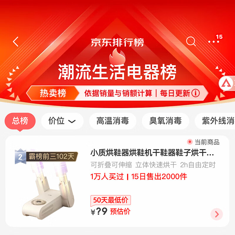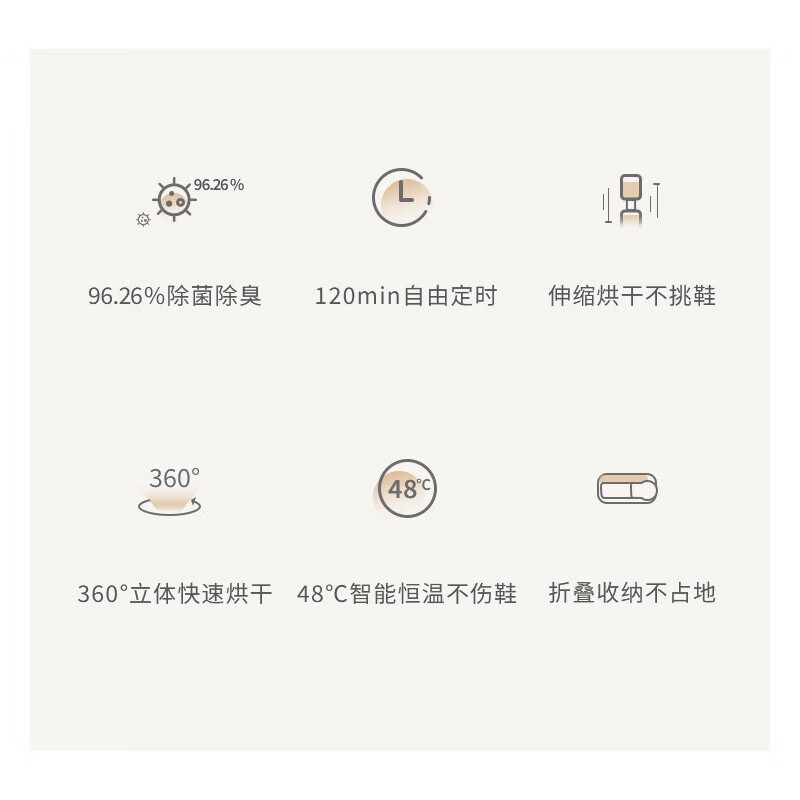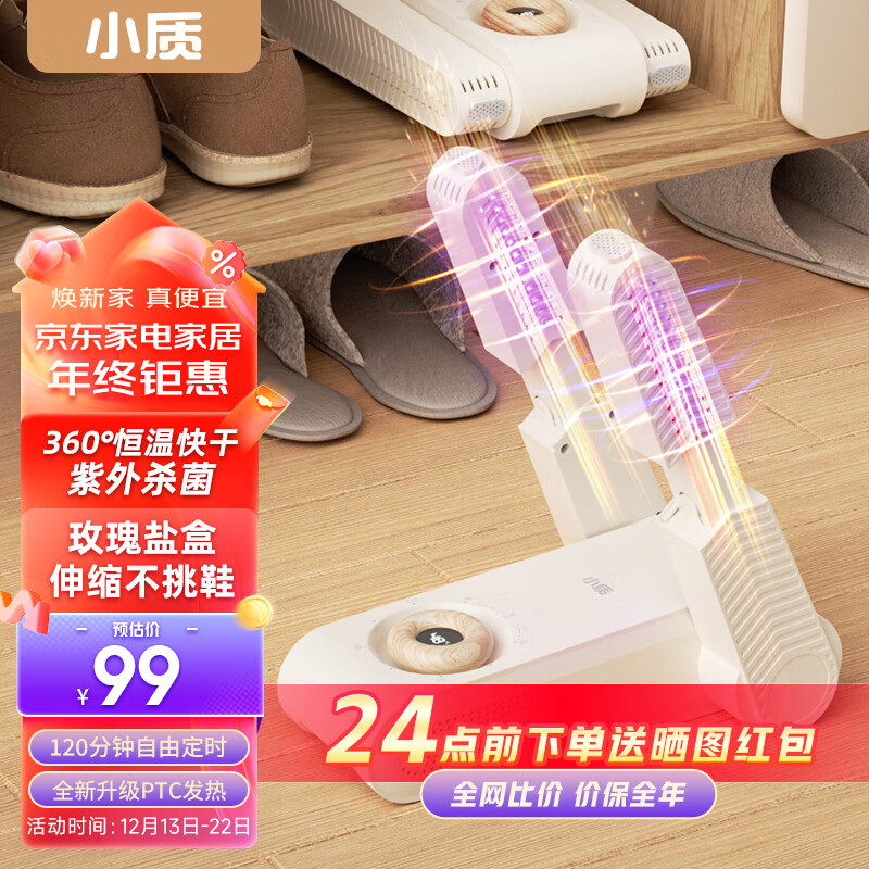 小质烘鞋器烘鞋机干鞋器鞋子烘干器紫光消毒除臭除菌家用烤鞋器可折叠可伸缩 360°除菌除.臭+玫瑰盐盒+10s速热+自由定时 SH01系列价格:98.00元!