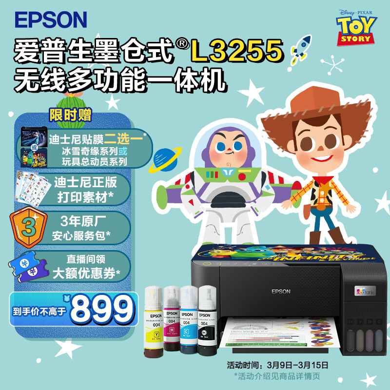 爱普生(EPSON) 墨仓式 L3255彩色打印机 微信打印/无线连接 家庭教育好帮手 (打印、复印、扫描)价格:899.00元!