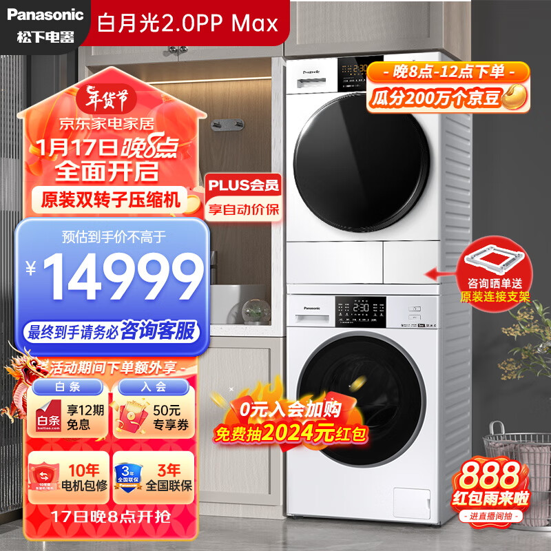 松下(Panasonic)白月光2.0PP Max 升级护理版 12+10洗烘套装 原装变频压缩机 冷热除菌 宠物除毛烘 3NB1E+82QR1价格:15499.00元!