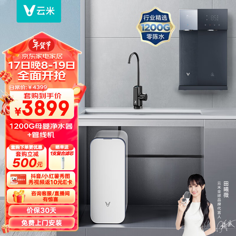 云米(VIOMI)Super Y 1200G全屋净水套装净水器+冷热管线机Master 3两件套家用直饮加热即热净水器净水机价格:4399.00元!