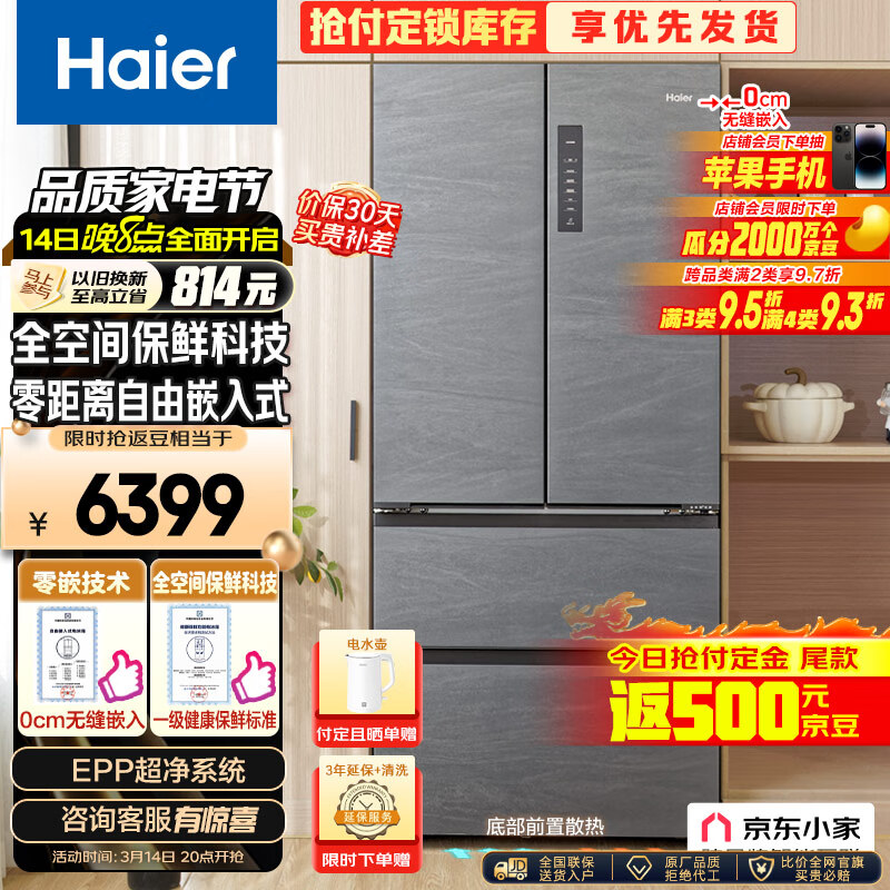海尔(Haier)501升全空间保鲜零嵌法式四开多门嵌入式电冰箱家用一级超薄以旧换新510旗舰款BCD-501WGHFD14S8U1价格:7099.00元!