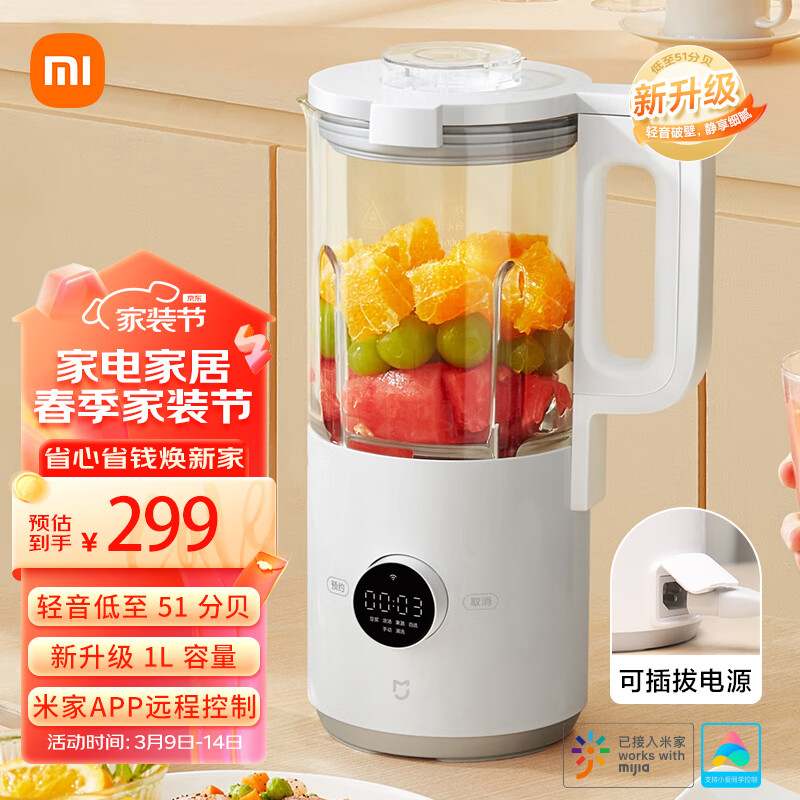 米家小米轻音破壁机豆浆机榨汁机料理机儿童辅食机 家用多功能全自动清洗免洗 五谷杂粮免煮免过滤1升价格:299.00元!