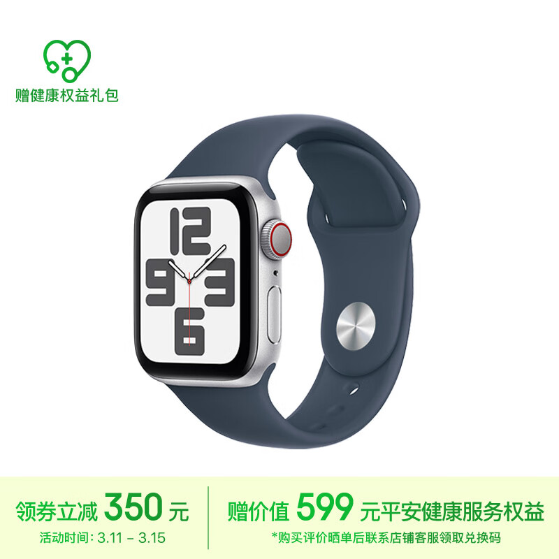 Apple/苹果 Watch SE 2023款智能手表GPS+蜂窝款40毫米银色铝金属表壳风暴蓝色运动型表带S/M MRGK3CH/A价格:2249.00元!