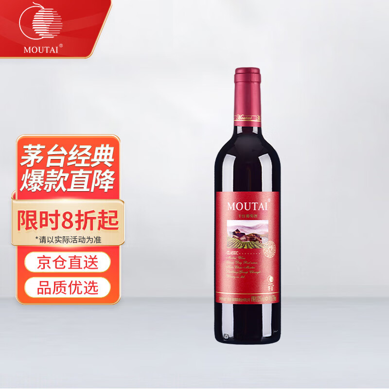 茅台(MOUTAI)经典系列红标干红葡萄酒750ml 单支装价格:69.00元!