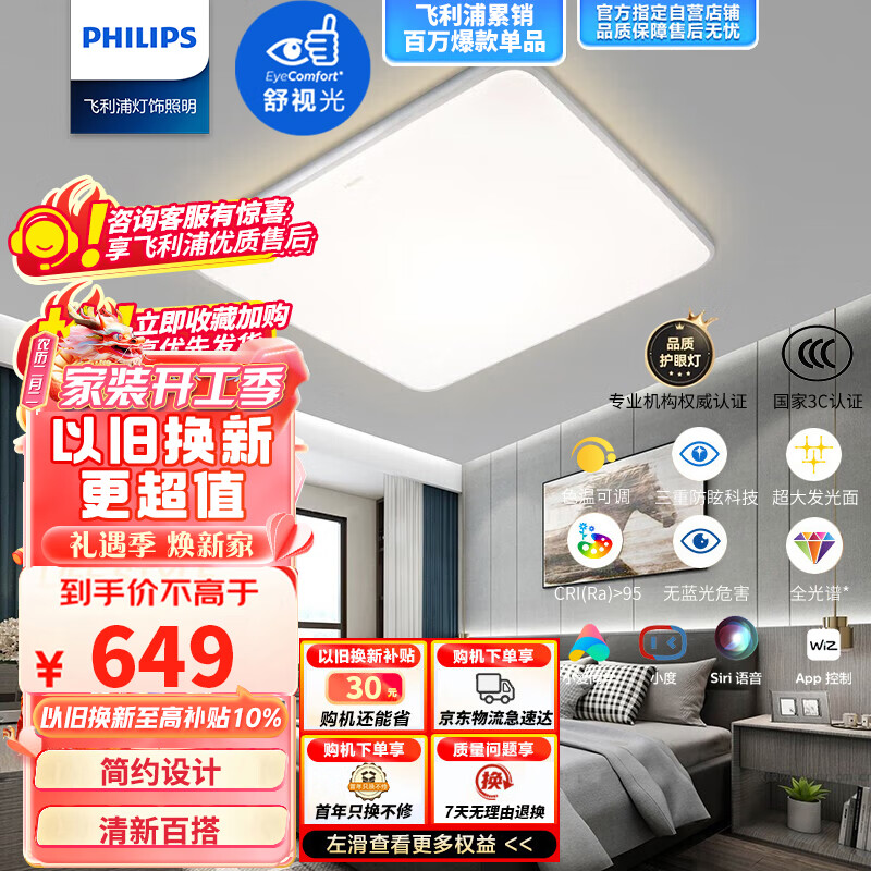 飞利浦怡轩吸顶灯方形 55W 27-65K CRI95 智能款(银)优缺点评测评价:
