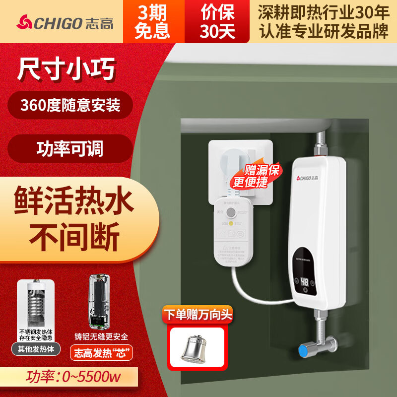 志高(CHIGO)即热式小厨宝 即热式电热水器 5500W厨房热水器集成免储水电热水龙头下进水可台上台下ZG-KB515价格:198.00元!
