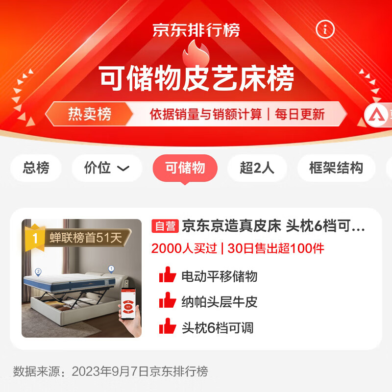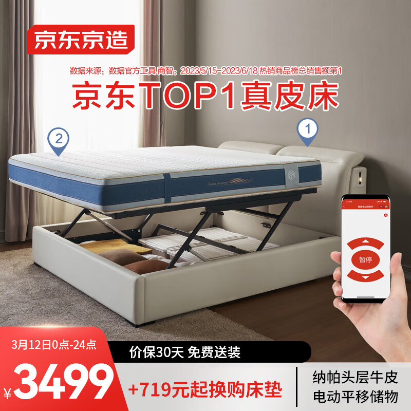 京东京造真皮床 纳帕牛皮|电动储物|可调头枕 主卧双人床1.8米×2米BL05价格:3699.00元!