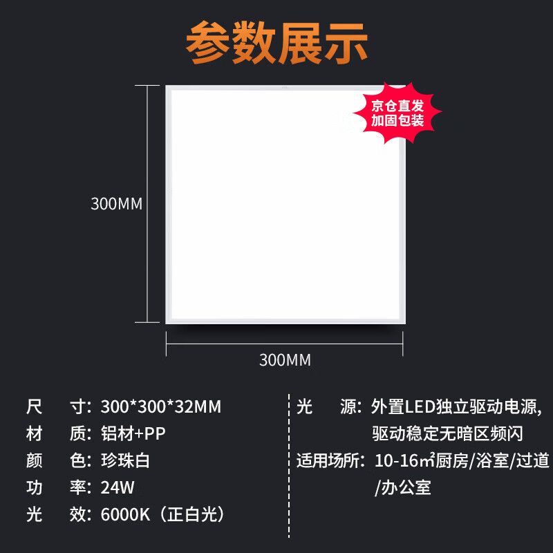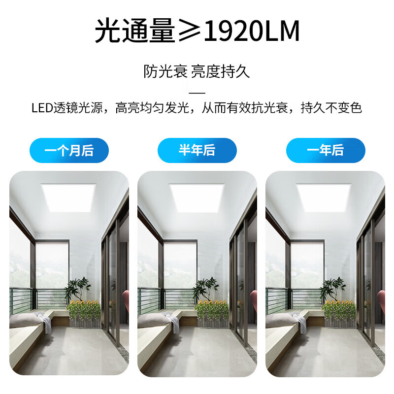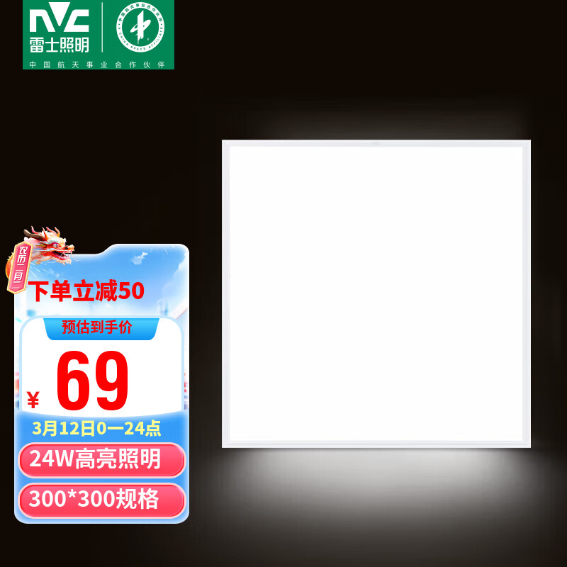 雷士(NVC)厨房灯 led集成吊顶厨卫灯吸顶灯 铝扣板卫生间平板灯 面板灯24W价格:119.00元!