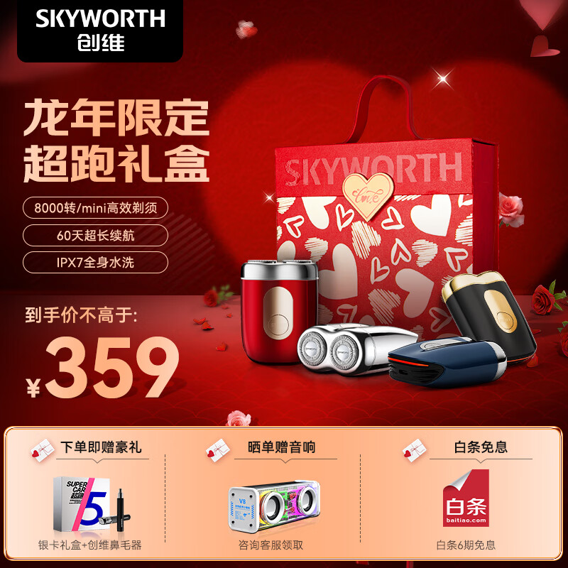 创维超跑剃须刀 电动合金5系小钢炮便携刮胡刀 全身防水快充 【龙年限定礼盒】 送男友老公 流光银价格:359.00元!