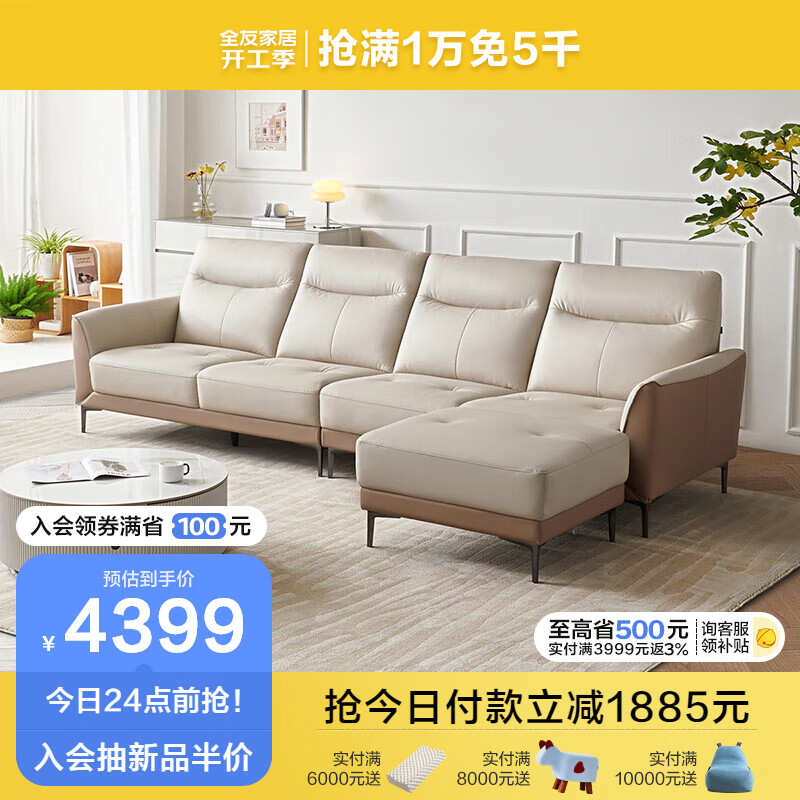 全友家居 真皮沙发 现代简约小户型头层牛皮轻奢直排式沙发客厅102710价格:6284.29元!