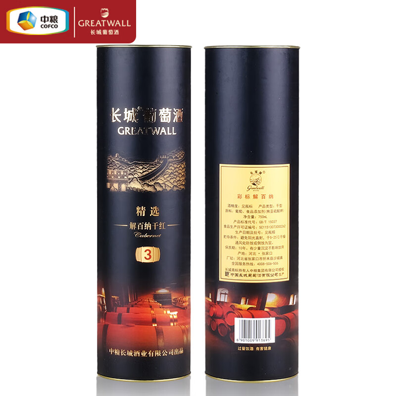 商品名称:长城(GreatWall)精选3解百纳筒装干红葡萄酒