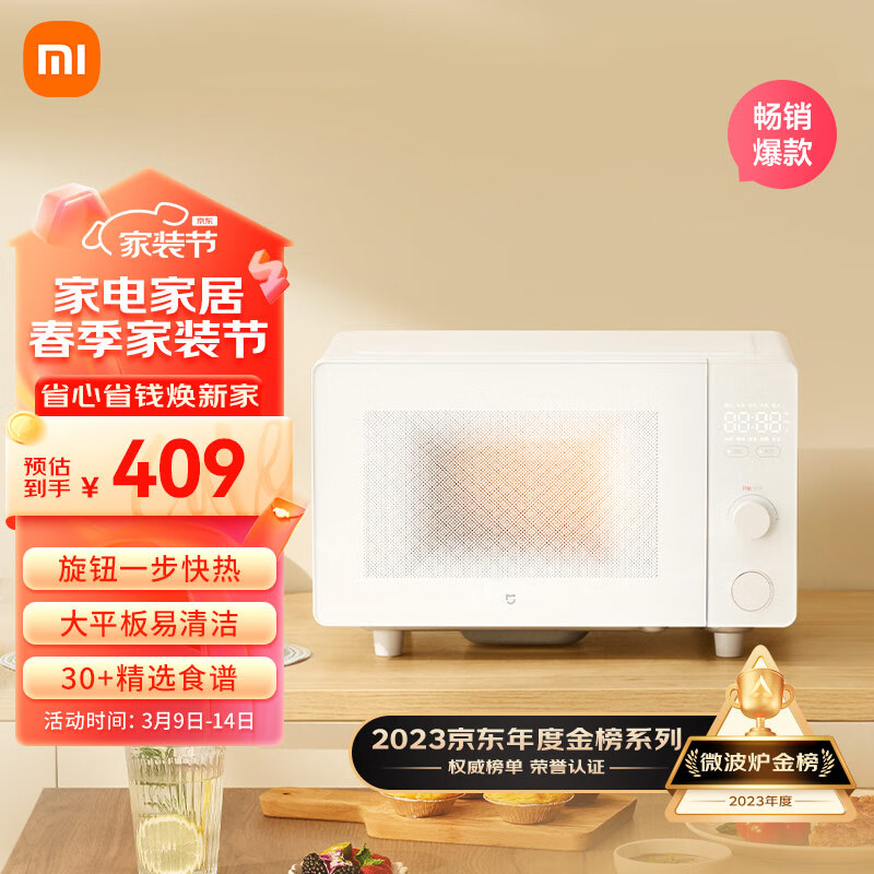 米家小米微波炉家用小型多功能 小尺寸平板式易清洁 大火力均匀加热 机械式旋钮易操作 台式大容量20升价格:409.00元!