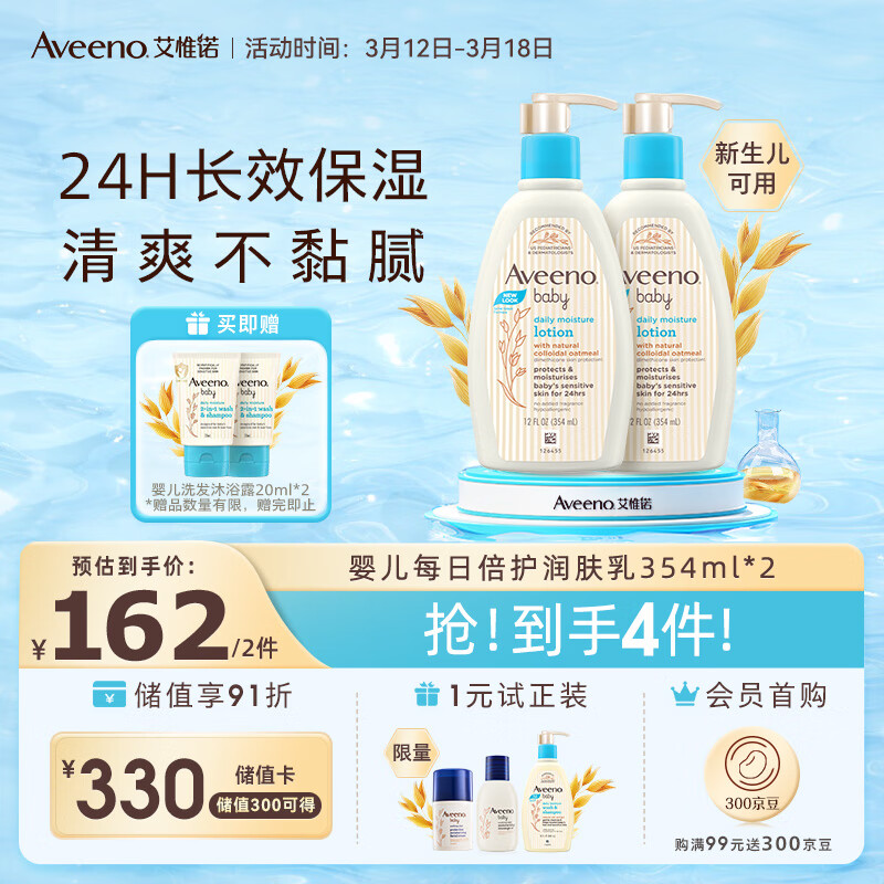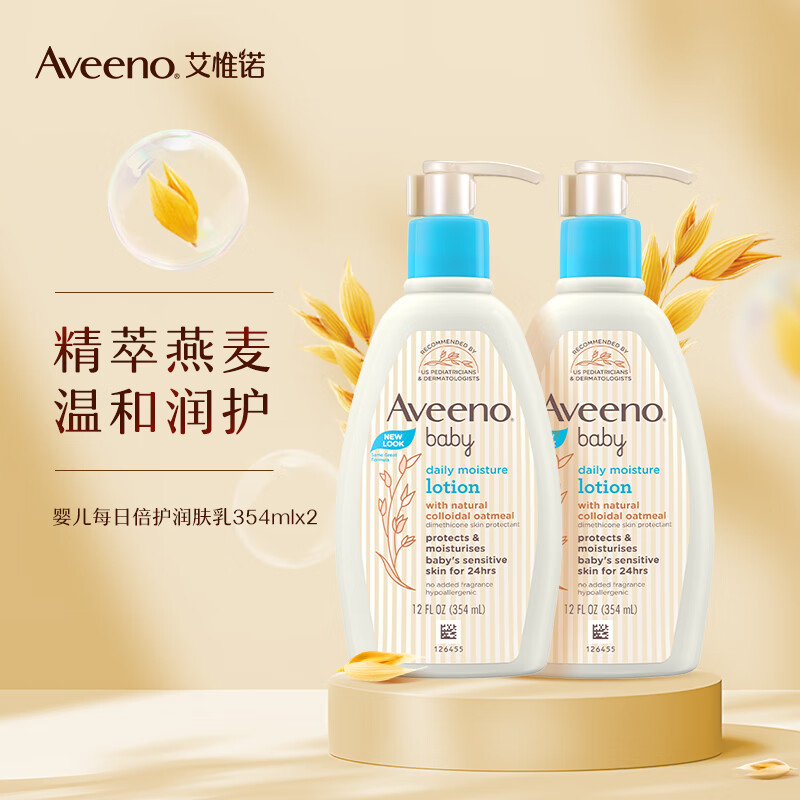 艾惟诺(Aveeno)儿童面霜每日倍护婴儿润肤乳燕麦深层滋润宝宝面霜354ml*2价格:180.00元!
