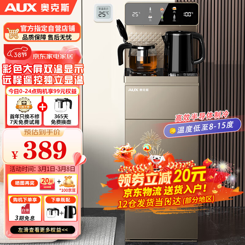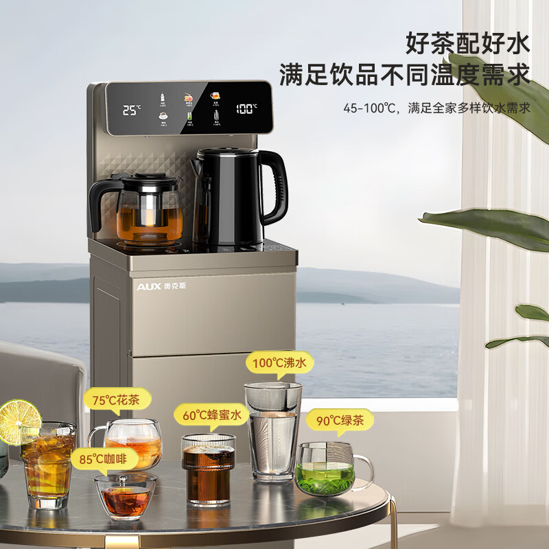 奥克斯(AUX)家用立式下置桶饮水机 家用高端客厅多功能智能遥控大屏双显茶吧机 一键专温定制YCB-0.75-40冷热价格:409.00元!