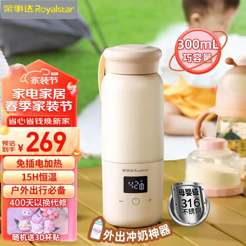 荣事达(Royalstar)电热水杯无线便携式恒温水壶出差旅行烧水杯调奶器温奶外出冲奶泡奶神器电热水壶保温水杯RS-CP03C价格:269.00元!