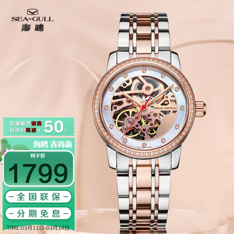 海鸥(SEAGULL)手表女士自动机械表 女表礼物荆棘玫瑰镂空腕表 317.15.6120KL价格:1979.00元!