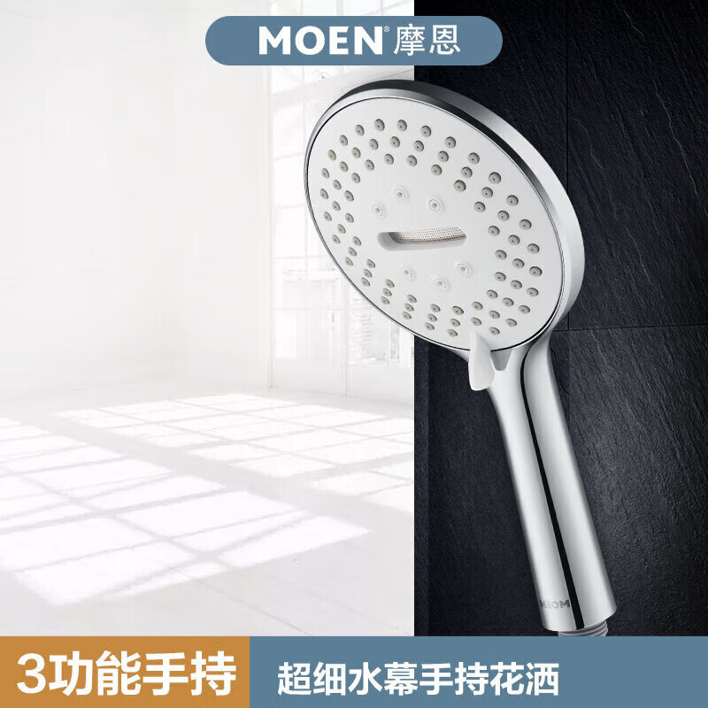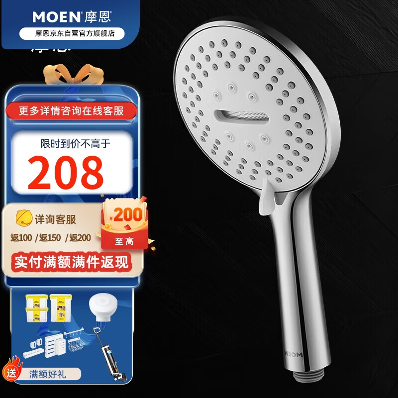 摩恩(MOEN)多功能淋浴花洒喷头 ABS节水大面板手持 水幕增压手持花洒HH3009价格:208.00元!