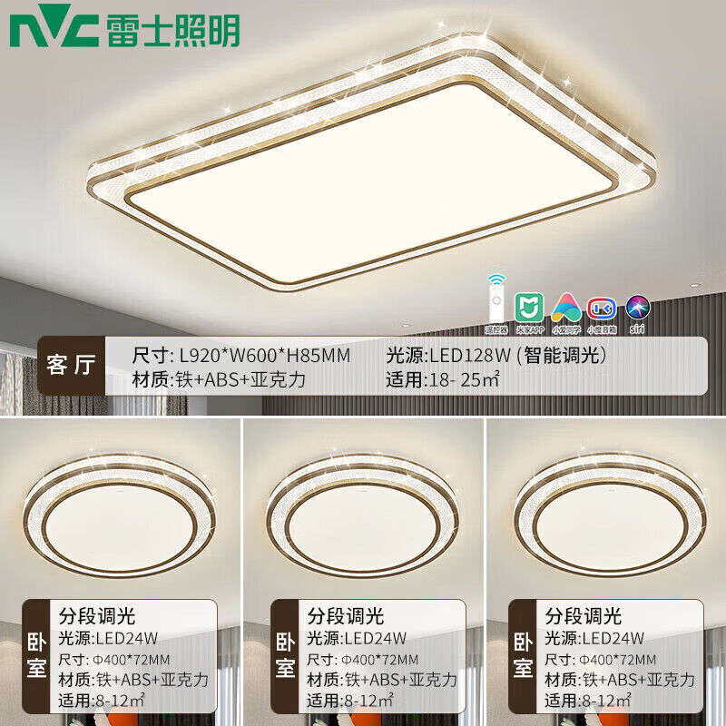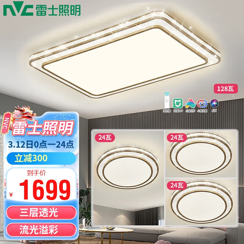 雷士照明(NVC)LED吸顶轻奢客厅书房卧室餐厅灯套餐双层发光灯晶宏三室一厅套装B价格:1999.00元!
